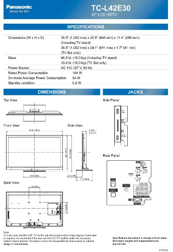 You will find real-life experiences and opinions voiced by people about a wide range of Panasonic VIERA TC-L42E30 42-Inch 1080p 120Hz LED HDTV. Read reviews of Panasonic VIERA TC-L42E30 42-Inch 1080p 120Hz LED HDTV from hundreds of users, plus ratings, advice and prices to help you pick the right products for you.