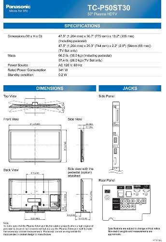 You will find real-life experiences and opinions voiced by people about a wide range of Panasonic VIERA TC-P50ST30 50-Inch 1080p 3D Plasma HDTV. Read reviews of Panasonic VIERA TC-P50ST30 50-Inch 1080p 3D Plasma HDTV from hundreds of users, plus ratings, advice and prices to help you pick the right products for you.